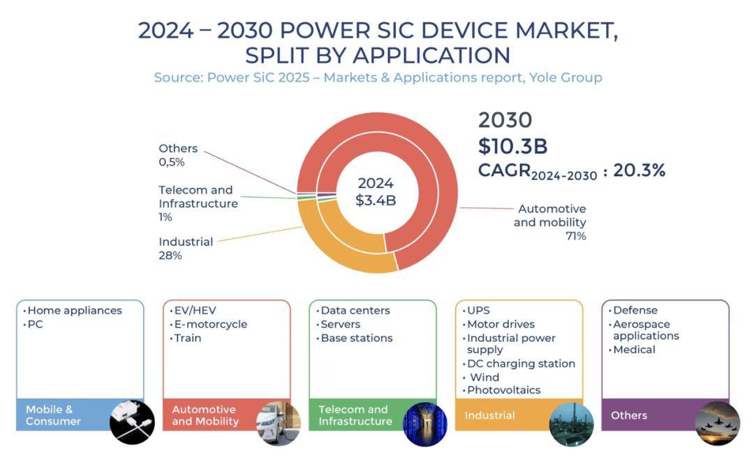 预计到2030年,汽车与出行领域将占据SiC市场71%的份额[4]。