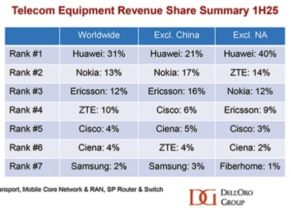 [7] TelecomLead - Global Telecom Equipment Vendors H1 2025 Revenue Share (https://telecomlead.com/wp-content/uploads/2025/10/Telecom-equipment-vendors-H1-2025-583x420.jpg)