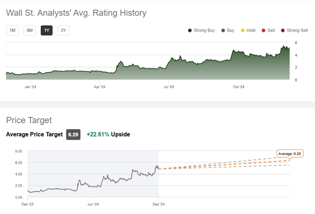 Recognition and analyst sentiment: POET won the 2024 AI Breakthrough Award for Best Optical AI Solution; Wall Street consensus has shifted to predominantly Strong Buy with average price target of $6.29 (22.61% upside)